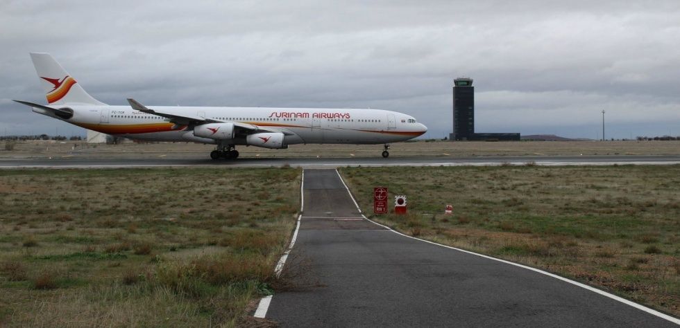 Un avión cuatrimotor AIRBUS A-340 de la compañía AEFL, operado por Surinam Airways, que ya ha tomado tierra en el aeródromo manchego, será el primero en ser reciclado dentro de esta nueva actividad industrial contemplada en la estrategia de CRIA para relanzar la infraestructura.