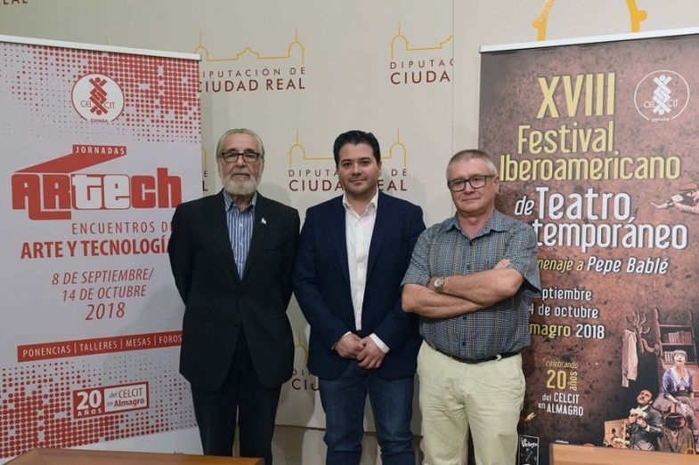 A la presentación han asistido el vicepresidente de la institución provincial, David Triguero, el concejal de Cultura de Almagro, Pedro Torres, y el director del CELCIT y del festival, Luis Molina, para dar a conocer la programación de este evento que se inaugura el próximo viernes, 28 de septiembre, en el Teatro Municipal de Almagro con el concierto de Amancio Prada.