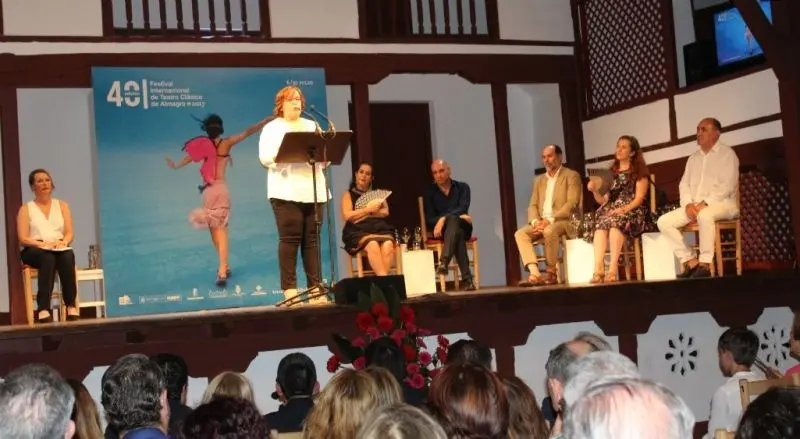 Olmedo ha realizado estas declaraciones en este acto en el que ha estado acompañada por la directora del Festival, Natalia Menéndez, el alcalde de Almagro, Daniel Reina, el vicepresidente de la Diputación de Ciudad Real, David Triguero, además de la presencia de algunas sorpresas, como la directora de la Compañía Nacional de Teatro Clásico, Helena Pimenta, los actores Juan Messeguer y Carlos Hipólito, el director de cine Mariano Barroso, el director de escena, dramaturgo y músico Eduardo Vasco, y el subdirector general de Teatro del INAEM, Fernando Cerón.