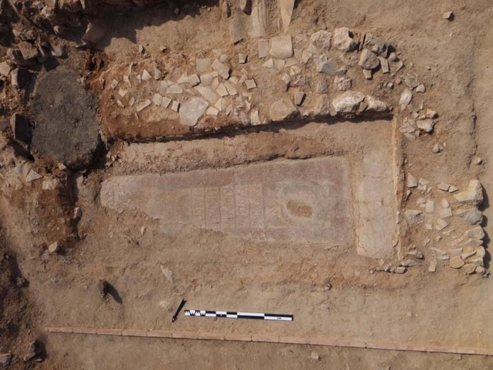 En el marco de las investigaciones que se vienen desarrollando en Oreto, una de las prioridades era la extracción de esta lauda sepulcral, ya que la misma constituye uno de los mejores exponentes de la epigrafía funeraria sobre mosaico en Hispania y en Europa.