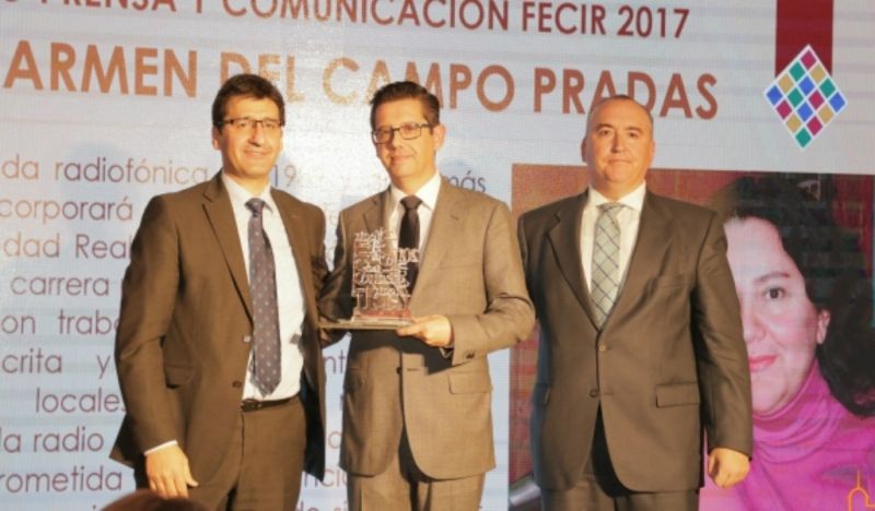 Caballero entregó el premio FECIR de Prensa y Comunicación otorgado a la periodista de la Cadena Ser Carmen del Campo, que por motivos personales no pudo asistir, recogiéndolo en su nombre el director de la emisora Félix Amaya.