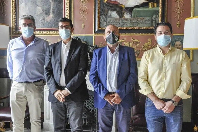 El presidente de la Diputación de Ciudad Real José Manuel Caballero, junto al vicepresidente del Área de Cultura, Memoria Democrática, Juventud y Deportes David Triguero, ha recibido al presidente de la Federación de Fútbol de Castilla-La Mancha Pablo Burillo así como al vicepresidente del área de Relaciones Institucionales José Luis Urda.