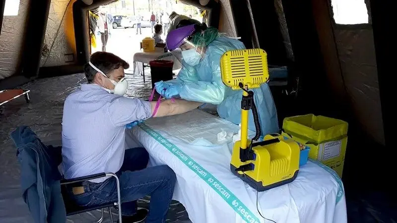 El SESCAM, a través de la Gerencia de Urgencias, Emergencias y Transporte Sanitario (GUETS), ha instalado un punto móvil para la realización de test rápidos y pruebas PCR para la detección del coronavirus, ubicado en los aledaños del Pabellón Quijote Arena de Ciudad Real.