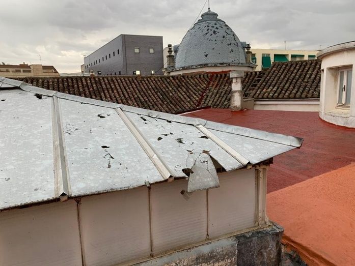 La lluvia ha venido en muchos municipios acompañada de granizo, viento y carga eléctrica; aunque la fuerza de la tormenta y su duración han sido distintas en las diferentes zonas de la provincia, causando los principales daños en la capital, donde el granizo ha caído con tanta fuerza que ha roto lunas de vehículos y edificios, además de cubiertas y tejados (entre ellos la cúpula del palacio provincial, cuya imagen difundía en redes sociales el presidente de la Diputación, José Manuel Caballero).