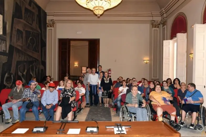El presidente de la Diputación de Ciudad Real, José Manuel Caballero, ha recibido en el Palacio Provincial a un grupo integrado por cuarenta y cinco personas con discapacidad y sus monitores de la Asociación ‘Sonrisas e Ilusiones’, provenientes de las localidades de Herencia, Almuradiel y El Robledo, que han cursado visita a la institución para conocer su riqueza pictórica y artística.