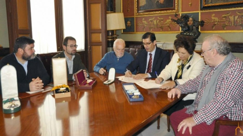 En concreto, se ha rubricado la cesión de más de sesenta medallas y de las siete vitrinas en las que han permanecido expuestas desde que fueron recepcionadas con la entrada del nuevo siglo. Caballero ha explicado que una condecoración tiene valor por quien la otorga y por quien la recibe. Y ha remarcado el valor sentimental, simbólico y emocional del acto celebrado hoy para proceder a la cesión de las dignidades, que ha tenido lugar en el Salón de Recepciones.