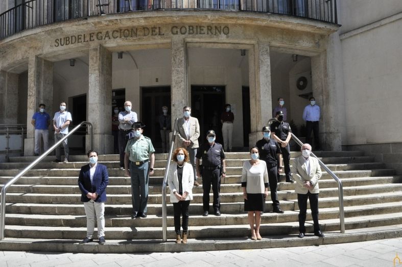 Representantes de la Diputación Provincial han guardado, este mediodía, un minuto de silencio frente a la Subdelegación del Gobierno de Ciudad Real y al Palacio Provincial con motivo de la finalización del luto oficial declarado por el Consejo de Ministros, el pasado 26 de mayo, en señal de memoria, homenaje y reconocimiento de las víctimas de la pandemia del COVID-19. El luto nacional ha tenido una duración de diez días y se dará por finalizado, hoy 5 de junio, a medianoche.