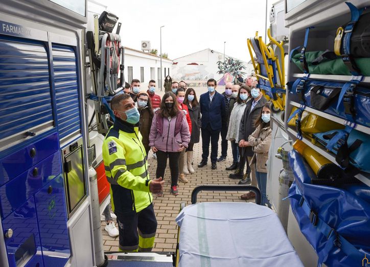 En el Aulario Municipal de Alcolea Caballero mantuvo un encuentro con los 15 alumnos y alumnas del curso, que han sido becados con 537 euros mensuales con el objetivo de incentivar su permanencia en el curso y que puedan concluir la formación. Les animó a aprovechar el tiempo, también les ha pedido que valoren el esfuerzo que hacen las administraciones con recursos públicos y que aprecien la oportunidad que tienen de formarse y adiestrarse en una disciplina como el transporte sanitario no asistencial, que va a ser muy demandada, de ahora en adelante, ante la escasez de médicos.
