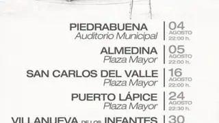A través del Área de Cultura, que está gestionada por el vicepresidente David Triguero, la Orquesta Filarmónica de La Mancha actuará el Piedrabuena el 4 de agosto; el 5 en Almedina; el 16 en San Carlos del Valle; el 24 en Puerto Lápice y el 30 en Villanueva de los Infantes.