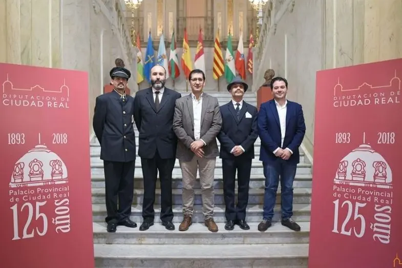 Los representantes de los medios de comunicación que han asistido a la presentación de los actos del 125 aniversario han sido los primeros en conocer cómo serán las visitas teatralizadas porque ha irrumpido en la sala el presidente de la Diputación en 1893, José Cendrero, acompañado por el arquitecto Sebastián Rebollar, el autor del proyecto del edificio, quienes les han dado la bienvenida y les han explicado las razones y la importancia que tuvo entonces construir un Palacio en Ciudad Real.