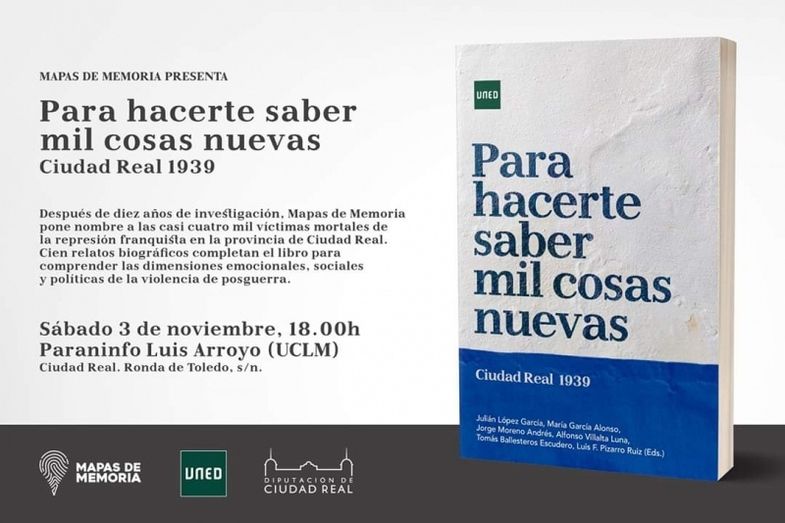 Tras diez años de investigación, Mapas de Memoria pone nombre a las casi cuatro mil víctimas mortales de la represión franquista en la provincia de Ciudad Real. El libro Para hacerte saber mil cosas nuevas. Ciudad Real 1939, editado por la UNED en colaboración con la Diputación de Ciudad Real, saca por primera vez a la luz los nombres y trayectorias vitales de todas las personas que sufrieron esta violencia. Cien relatos biográficos completan el libro para comprender las dimensiones emocionales, sociales y políticas de esta época trágica de la historia de España.