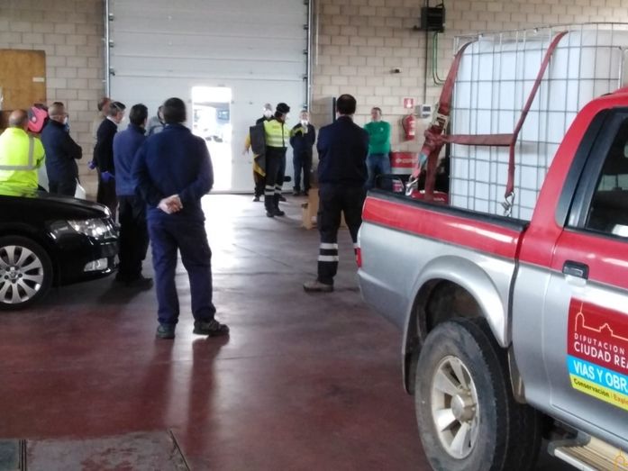 Efectivos de la empresa pública Gestión Ambiental de Castilla-La Mancha (GEACAM), dependiente de la consejería de Agricultura y Medioambiente del Gobierno regional, han instruido esta mañana en Ciudad Real al personal del área de Infraestructuras de la Diputación provincial en materia de desinfección y trabajos en exteriores, una medida que forma parte del dispositivo de lucha contra el coronavirus que está llevando a cabo la Administración que preside José Manuel Caballero.