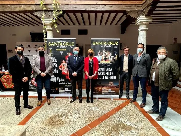El patio del Hotel Casa Palacio de la localidad ha acogido la presentación de estos dos carteles, que ha contado con la presencia del diestro Pepe Moral, el todavía novillero Carlos Aranda y el novillero Daniel de la Fuente. También han estado presentes la alcaldesa de Santa Cruz de Mudela, Gema García; la concejala de Asuntos Taurinos, Amanda de Lamo; el delegado provincial de la Consejería de Hacienda y Administraciones Públicas, Francisco Pérez; el responsable de la empresa Bullstar Espectáculos, Juan Antonio Medina, y el ganadero Ignacio Frías. El acto ha estado presentado por Álvaro Gracia.