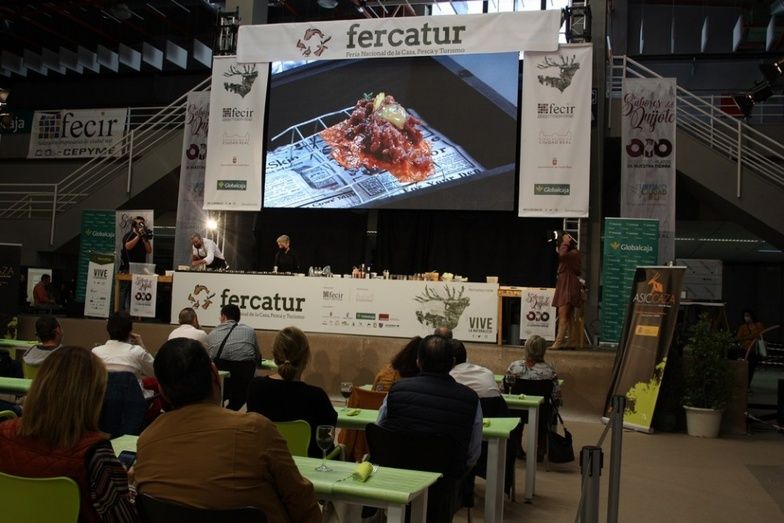 Por otro lado, el chef José Antonio Medina, de El Coto de Quevedo, ha sido el protagonista del showcooking patrocinado por la Diputación Provincial de Ciudad Real. El cocinero ha confeccionado un menú basado en dos snacks consistentes en un falso merengue de ciervo y una tosta de paté de perdiz con polvo de hongos. Además, ha elaborado una ensalada de perdiz y un plato de ciervo. José Antonio Medina, que se ha confesado un obsesionado de la carne de caza, ha resaltado que trabaja con productores de cercanía y que el menú de su restaurante se basa en caza y productos de Castilla-La Mancha.