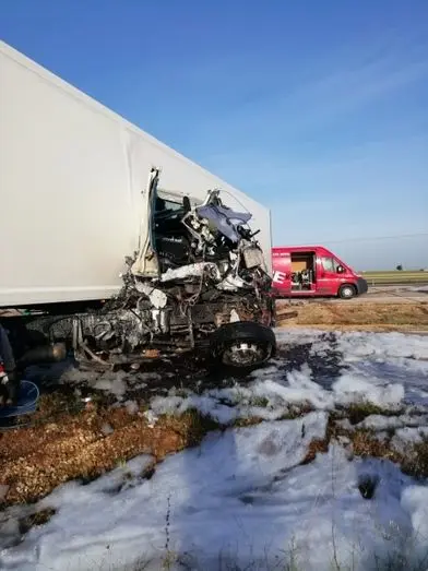 El suceso ha tenido lugar sobre las cinco y media de la mañana y ha sido necesaria la intervención de los bomberos para excarcelar al conductor herido, ya que al colisionar por alcance los dos camiones había quedado atrapado en la cabina.