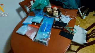 Durante los registros llevados a cabo se aprehendieron 1616 gramos de cocaína, 1205 gramos de hachís, 500 gramos de marihuana, 17 gramos de Cristal, 27 gramos de heroína y 459 pastillas de éxtasis; así como 36.400 euros, precursores y sustancias de corte, básculas de precisión, prensas mecánicas, teléfonos móviles, pistolas simuladas y 3 vehículos a motor.