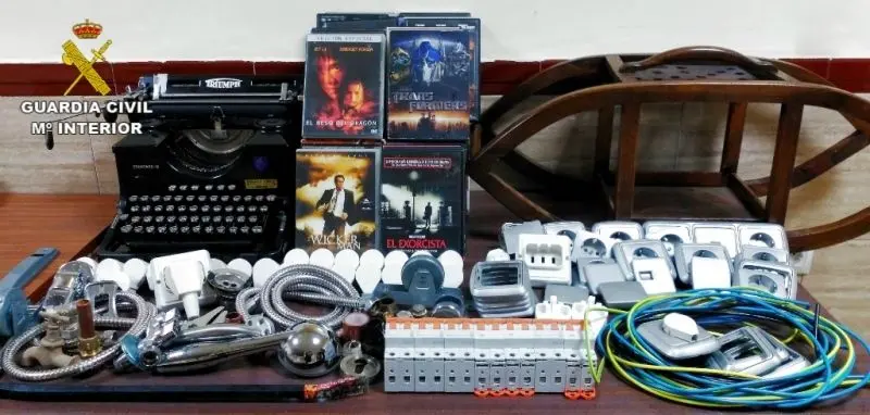 La Guardia Civil registró una de las viviendas de la urbanización, donde recuperó material eléctrico, enchufes, diferenciales, duchas, picaportes y una máquina de escribir; que fueron reconocidos por sus legítimos propietarios como parte de los efectos sutraídos. También fue intervenida una palanqueta que utilizaban para fracturar puertas y ventanas.