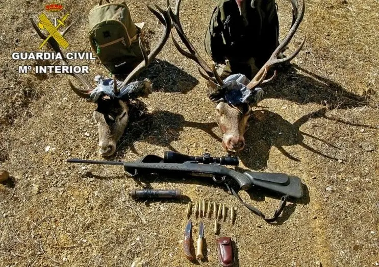 La Guardia Civil de Ciudad Real ha detenido a dos personas como presuntas autoras de un delito de caza furtiva, incautándoles dos cabezas de ciervos machos en una finca de la localidad de Almodóvar del Campo. Dos personas también han sido investigadas por los mismos hechos en Manzanares.