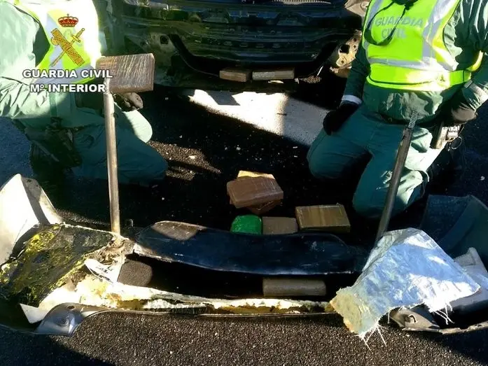En una de las identificaciones se detectó a una persona de 40 años de edad, vecina de Arganda del Rey (Madrid), que portaba en un doble fondo en el parachoques trasero del vehículo 11 paquetes de cocaína.