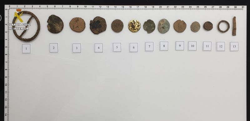 La Guardia Civil ha investigado a cuatro personas por expoliar un yacimiento arqueológico romano del término municipal de Villanueva de los Infantes, de donde habían obtenido ilegalmente trece piezas metálicas empleando sendos detectores de metales y azadas.