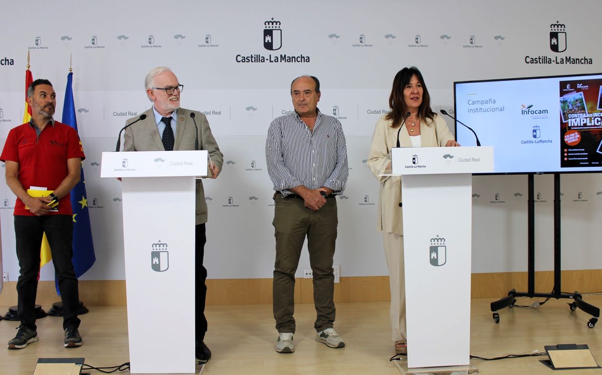 La delegada provincial de la Junta de Comunidades se ha pronunciado de este modo días antes de que comience la temporada de peligro alto y extremo (del 1 de junio al 30 de septiembre) con la presentación de la campaña ‘Contra los incendios, implícate. Protejamos los espacios naturales de Castilla-La Mancha’, un acto en el que ha estado acompañada por el delegado de Desarrollo Sostenible, Casto Sánchez; el jefe de servicio de Medio Natural, Víctor Díez; y el director del Centro Operativo Provincial (COP) del Infocam, Juan Pedro García.