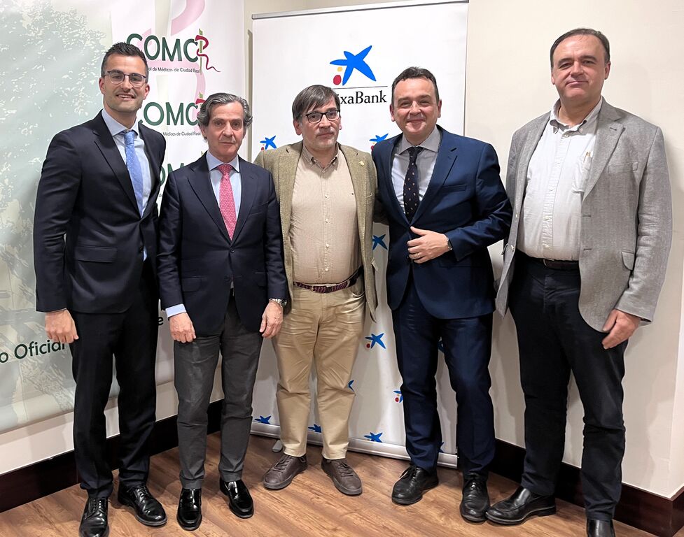 El premio al Mejor Trabajo Científico contó con el patrocinio de CaixaBank. En representación de la entidad intervino José Manuel García Cáceres, director del Área de Negocio en Ciudad Real, quien felicitó a los premiados, agradeció la colaboración con el Colegio y trasladó el compromiso de seguir participando en iniciativas conjuntas y reforzando esa línea de trabajo compartido. También avanzó la voluntad de continuar ampliando esa colaboración con nuevas propuestas dirigidas al colectivo médico.