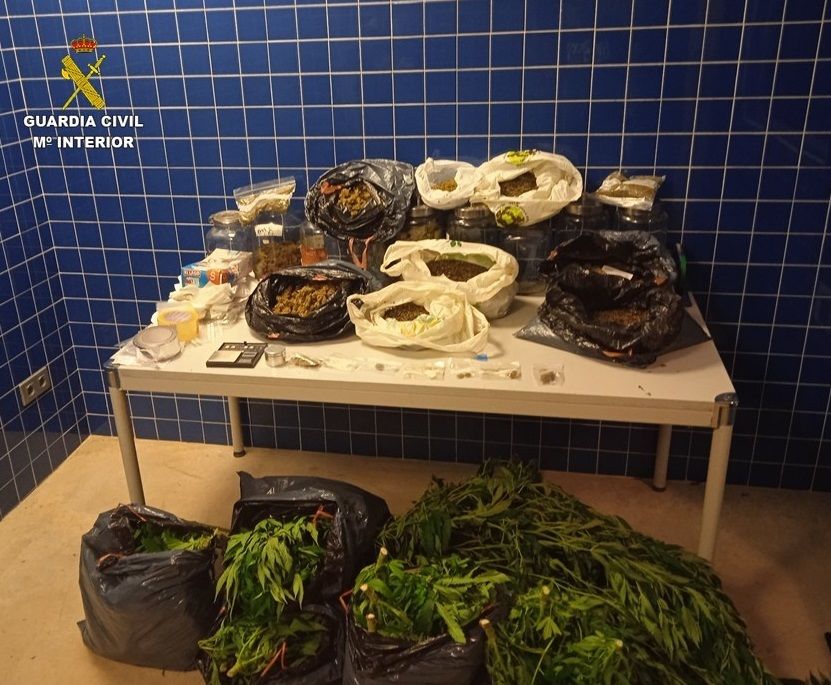 En los registros se intervinieron 128 plantas de marihuana en diferentes fases de crecimiento, así como hachís y 3.550 gramos de cogollos de marihuana ya seca, etiquetada y pesada para su venta. Además, fue intervenido dinero en efectivo, basculas de precisión, anotaciones del cultivo y compradores, teléfonos móviles y útiles para el cultivo y desarrollo de estas plantaciones, ya que en dos de los inmuebles se encontraron instalaciones indoor en las que se mantenía la temperatura y humedad óptima para el crecimiento y posterior secado de las plantas, manteniendo así una rueda continua de cultivo y tráfico de drogas durante todo el año.