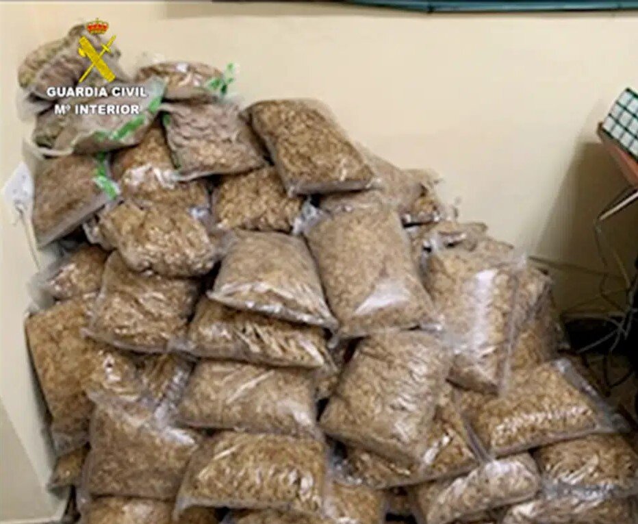Los agentes observaron la actitud nerviosa de esta persona, preguntándole por la mercancía que transportaba, manifestando que lo desconocía. Una vez abierto el compartimento de carga, observaron dos bultos de cartón de gran tamaño conteniendo hoja prensada de tabaco a granel y una bolsa de tela de color verde conteniendo en su interior lo que pudiera ser por su textura y color tabaco de liar.