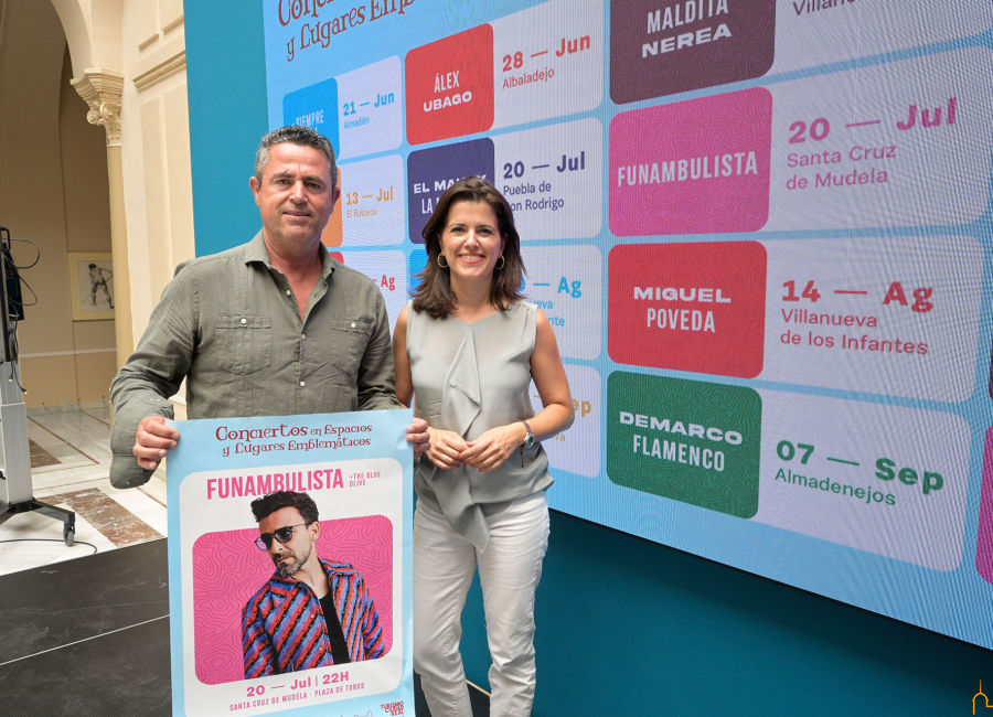 Las próximas citas de los Conciertos en Espacios y Lugares Emblemáticos serán el miércoles, 31 de julio, en la plaza del Ayuntamiento de Almuradiel, la actuación de “Seguridad Social” y “Wahira” como grupo de la tierra; y el 2 de agosto llegará “Rebujitos” al Parque municipal de Horcajo de los Montes, y la actuación de “El Niño de la Era” como artista de la tierra.