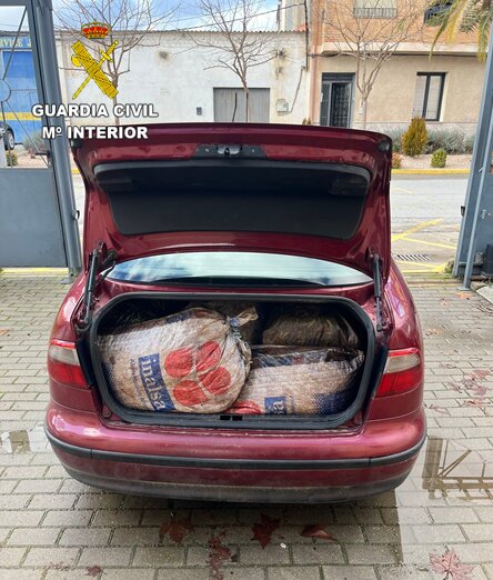 Los agentes actuantes procedieron a la realización del registro del vehículo hallando en su maletero un total de doce sacos y medio de aceituna. Ante la actitud y respuestas que obtuvieron de los ocupantes del vehículo y al no dar referencias suficientes para verificar su lícita procedencia, ni portar ningún documento de autorización para la recogida se incauta la misma, realizándose una aprehensión de dicha mercancía.