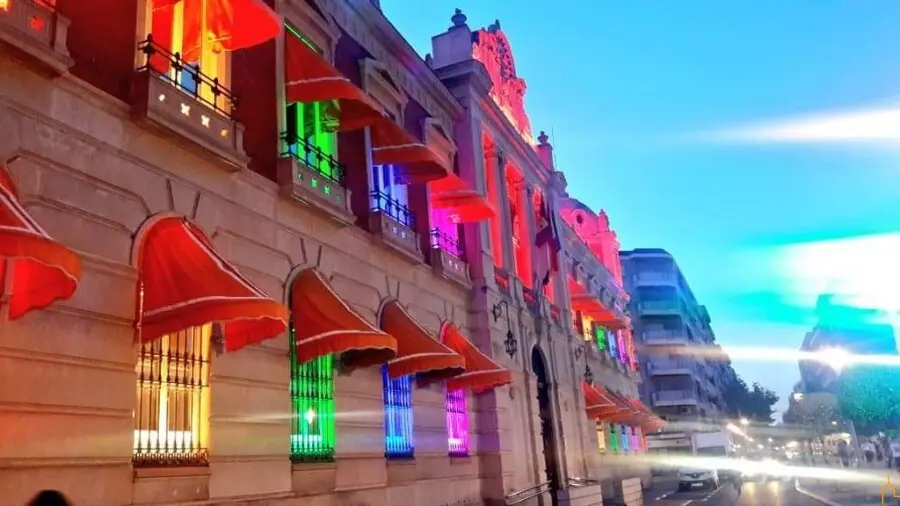 En esta ocasión lucen hasta el domingo los tonos de la bandera arco iris con motivo del Día Internacional del Orgullo LGTBIQ+, en consonancia con los preceptos de la campaña “Libres e Iguales” promovida por la Oficina del Alto Comisionado de Naciones Unidas para los Derechos Humanos (ACNUDH), desarrollada con el objetivo de generar conciencia sobre la violencia, la discriminación y otras violaciones de los derechos humanos que afectan a la comunidad LGTBIQ+. El fin último es promover la igualdad de todos y todas con independencia de la orientación sexual o la identidad de género.