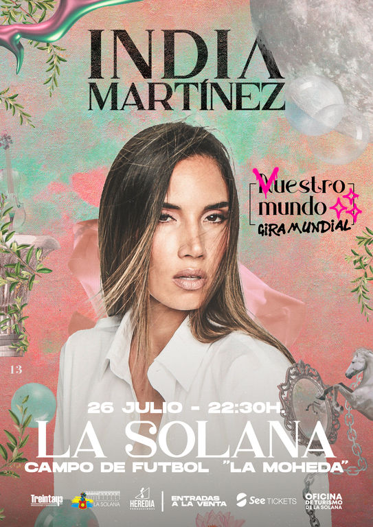 Las entradas, cuyo precio es de 25 euros más gastos de distribución, están ya disponibles online en la web de See Tickets(https://herediaproducciones.seetickets.com/event/india-martinez-en-la-solana/campo-de-futbol-la-moheda-/2992469) y de manera física en la Oficina de Turismo del Ayuntamiento de La Solana.