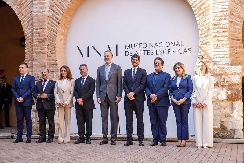 Coincidiendo con la celebración del Día Mundial del Teatro, el Ministerio de Cultura ha abierto hoy las puertas del Museo Nacional de Artes Escénicas (MNAE) en la localidad de Almagro (Ciudad Real). El acto inaugural ha estado presidido por el Rey, acompañado por el ministro de Cultura, Ernest Urtasun, y por el presidente de la Junta de Comunidades de Castilla-La Mancha, Emiliano García Page, junto a otras autoridades y representantes del ámbito cultural.