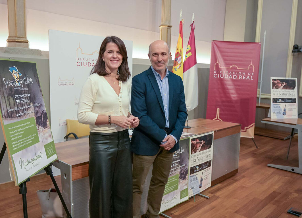 La vicepresidenta quinta de la Diputación, María Jesús Pelayo, ha presentado esta mañana en rueda de prensa la actividad “Sabor Quijote” en la localidad de Piedrabuena, que tendrá lugar el sábado 26 de octubre a lo largo de toda la jornada. Acompañada por el alcalde de la localidad anfitriona, José Luis Cabezas, Pelayo ha desgranado los detalles del programa y los objetivos del evento, enfocados en la promoción del turismo, la cultura y la gastronomía como motores de desarrollo económico de la provincia.