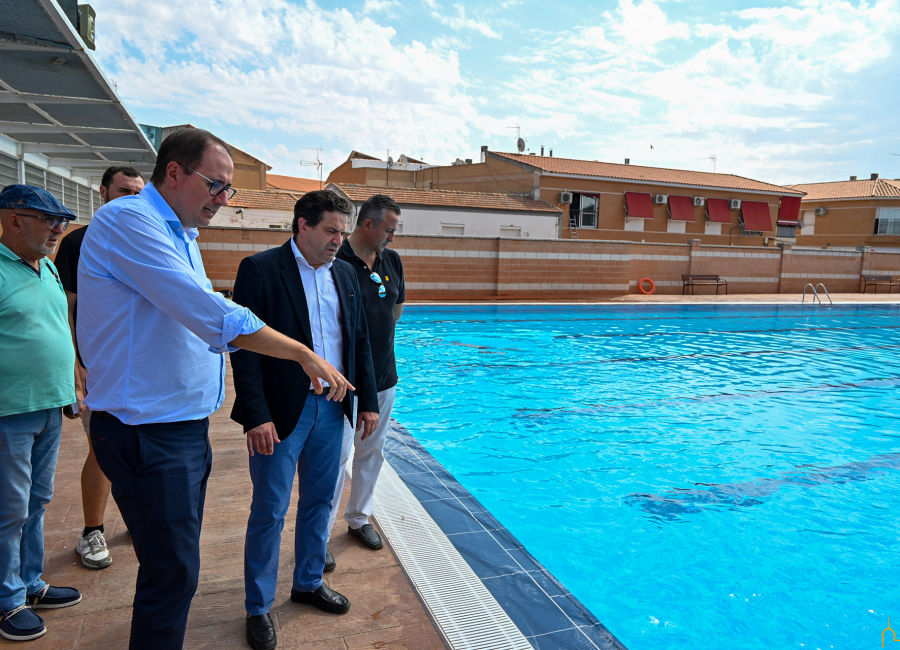 La visita ha continuado en las instalaciones de la piscina de Miguelturra en la que la Diputación ha invertido 390.000 euros para su reforma. Explicaba el presidente que desde que tuvo conocimiento de la necesidad urgente para solventar la situación de la piscina olímpica “la Diputación, en ese espíritu de colaboración con todos los ayuntamientos, en esa capacidad que tiene de ser flexible, cercana y de ocuparse muy rápidamente de las necesidades de todos los pueblos”, atendió ese requerimiento. Unas obras que han concluido en un tiempo récord, por lo que Valverde ha querido felicitar al alcalde por su labor para que estuviera en pleno funcionamiento a principios de julio.
