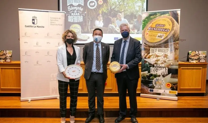 Pero también, como ha señalado el consejero, se debe aumentar la percepción del valor de este producto en el mercado nacional y de ahí campañas como ésta, “que sirven para diferenciar el producto y que los consumidores conozcan realmente que lo que consumen no es una imitación, gracias al sello de calidad, a la presencia de El Quijote y los molinos y la placa trasera de caseína, que significa que es verdadero queso manchego”.