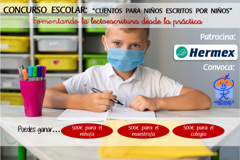 Como explica Elvira Sánchez-Igual, Responsable de Comunicación de esta asociación que lleva casi 30 años en activo "queremos que los niños despierten el amor por la lectura y la escritura y qué mejor forma de hacerlo proponiéndoles que sean ellos mismos los autores de los cuentos con los que sus maestros van a trabajar en el aula. Y por ello, gracias al patrocinio de HERMEX Ibérica, hemos establecido premios para todos. Hay 500 euros para el niño/a autor del cuento, 500 euros para el maestro/a que envía el cuento y 500 euros para el colegio.".