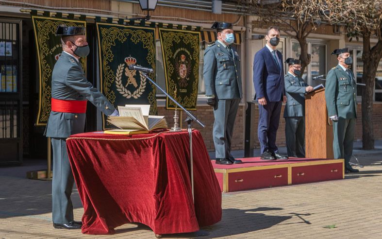 El general de Brigada ha tomado posesión oficial de su cargo en un sencillo y reducido acto, debido a las restricciones sanitarias vigentes, esta mañana en la Comandancia de Toledo, al que ha asistido junto, con el delegado del Gobierno, el teniente general Director Adjunto Operativo de la Guardia Civil, Pablo Salas.