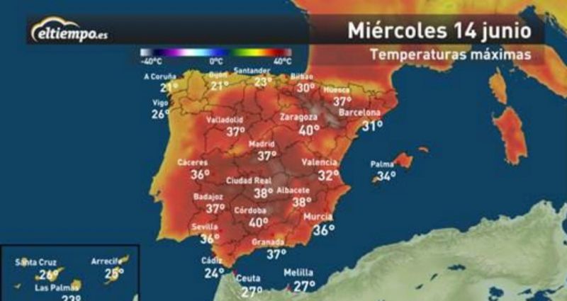 En algunas zonas como el valle del Tajo, Guadiana y Guadalquivir las temperaturas máximas podrán superar los 42ºC y las mínimas no bajarán de 25ºC.