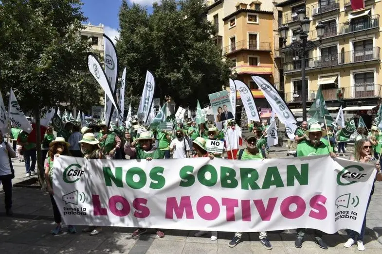 Más de trescientos delegados de la Central Sindical Independiente y de Funcionarios (CSIF) han protestado hoy en Toledo contra las políticas de castigo hacia los empleados públicos por parte de los gobiernos regional y central en una manifestación que ha comenzado frente al Palacio de Fuensalida y ha concluido en la delegación de Gobierno.