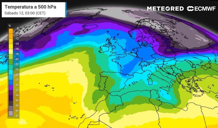Según nuestro modelo de referencia, durante el fin de semana una vaguada atravesará la península, lo que causará una notable bajada de las temperaturas con precipitaciones en forma de lluvia y nieve que se trasladarán de oeste a este, llegando incluso al archipiélago balear. De darse este escenario sería el episodio más inestable del año hasta el momento, pese a que no se producirán lluvias demasiado generales e intensas. Además, algunos mapas no descartan que se genere una DANA.