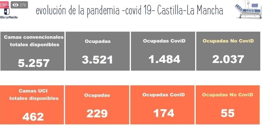 Asimismo hay 462 camas de UCI disponibles de las cuales 240 están ocupadas, (190 por pacientes COVID y 50 por pacientes no COVID).