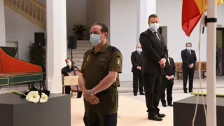 Ellas y ellos han sido los encargados de depositar una cala blanca, envuelta en un lazo negro, en representación de los sectores más significativos que han trabajado sin descanso en la lucha contra esta pandemia. A su trabajo, agradecido y reconocido, el presidente ha querido sumar el de los farmacéuticos, de los servicios funerarios, funcionarios, conductores oficiales, empresarios, medios de comunicación, el de la Iglesia Católica, las diputaciones y los ayuntamientos.