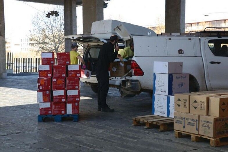 Entre el material que se ha repartido hoy se encuentra más de 314.000 mascarillas de diferentes niveles de protección, 4.200 monos impermeables, cerca de 5.700 batas de aislamiento impermeables, 1.800 gafas apantalladas, 2.500 delantales con mangas reutilizables, 44.000 guantes, y cerca de 4.000 envases de solución hidroalcohólica.