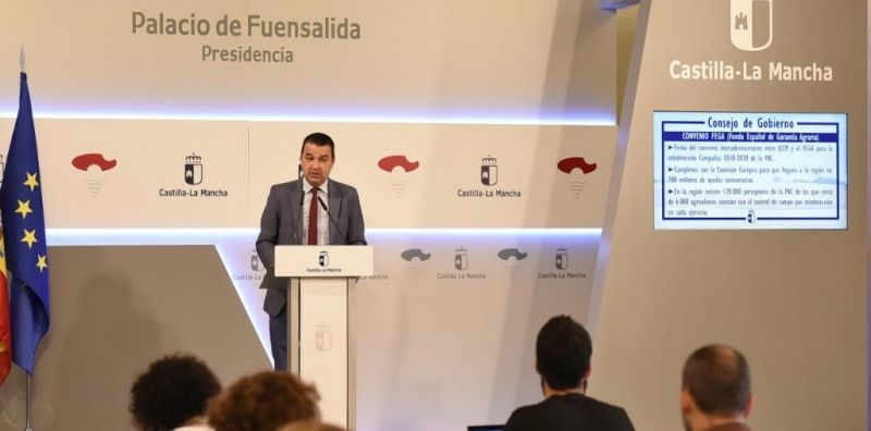 Francisco Martínez Arroyo, ha dado cuenta de los acuerdos de su departamento alcanzados en el Consejo de Gobierno, entre los que se encuentra la firma del convenio interadministrativo entre el Gobierno regional y el Fondo Español de Garantía Agraria (FEGA) para la teledetección en las campañas 2018-2020 de la PAC, con lo que se cumple con la Comisión Europea para que lleguen a la región los 700 millones de ayudas comunitarias.