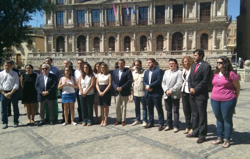 La viceconsejera de Administración Local y Coordinación Administrativa, Pilar Cuevas; el portavoz del Gobierno regional, Nacho Hernando, y el delegado de la Junta en Toledo, Javier Nicolás, han asistido al minuto de silencio que se ha guardado hoy en la plaza del Ayuntamiento de Toledo con motivo del XX aniversario del asesinato del concejal de Ermua (Vizcaya) Miguel Ángel Blanco.