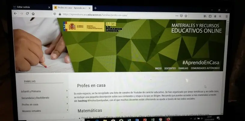 El Ministerio de Educación y Formación Profesional (MEFP) ha puesto en marcha la web https://aprendoencasa.educacion.es/ para facilitar el acceso a diferentes recursos, herramientas y aplicaciones que faciliten al profesorado, familias y alumnado la continuidad de la actividad educativa durante el periodo de suspensión de las clases presenciales debido al estado de alarma provocado por el coronavirus Covid-19.