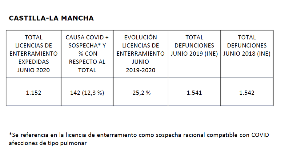 junio 1.152 licencias de enterramiento cuando en el mismo mes de 2019 se registraron 1.541 defunciones.