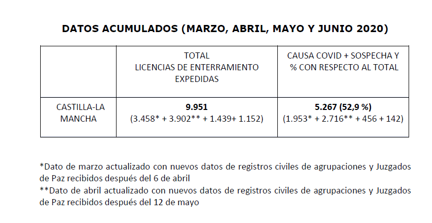 Las defunciones en Castilla-La Mancha en junio de 2020 han disminuido un 25,2 % con respecto a las inscritas en el mismo periodo del año anterior. Los registros civiles de Castilla-La Mancha han expedido el pasado mes de