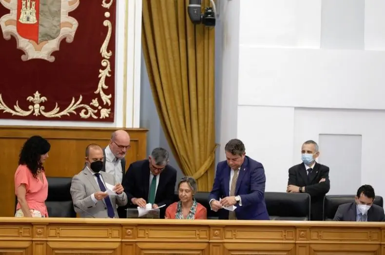 La sesión de este jueves había arrancado con un minuto de silencio en memoria de María Luisa, de 48 años, víctima de asesinato machista a principios de semana en Tomelloso. La Cámara regional presidida por Pablo Bellido ha vuelto a expresar de este modo su absoluto rechazo a la violencia de género, en presencia del presidente de Castilla-La Mancha, Emiliano García-Page, el vicepresidente José Luis Martínez Guijarro y, entre más integrantes del Gobierno, la consejera de Igualdad, Blanca Fernández, y la directora general del Instituto de la Mujer, Pilar Callado.